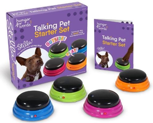 Several brands offer pet starter sets of talking buttons designed for beginners. Look for durable sets, that have clear sound quality, and are appropriately sized for your pet's paws.