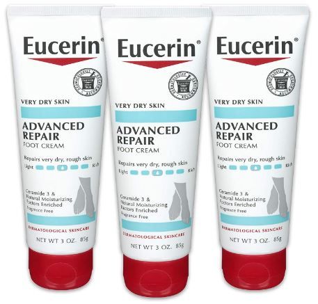 Includes three (3) 3-ounce tubes of Eucerin Advanced Repair Foot Cream.