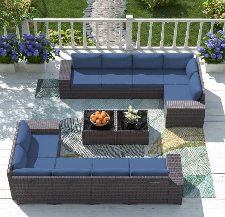 The 12-piece set allows for multiple layout options. You can arrange the sections to best fit your outdoor space, giving you the flexibility to create a layout that suits your needs and preferences.