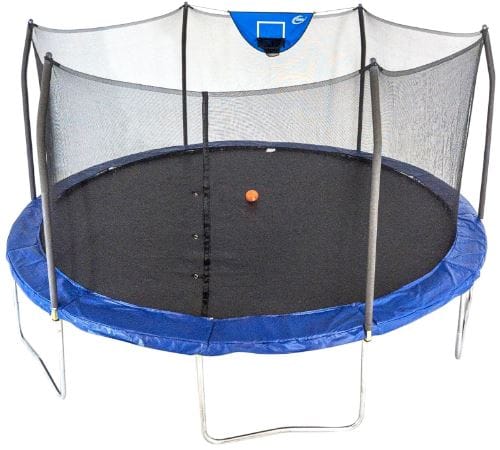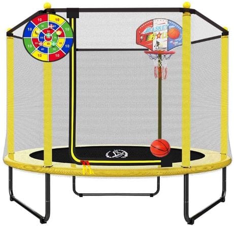 The added basketball hoop and dart board make this trampoline more than just a bouncing platform.